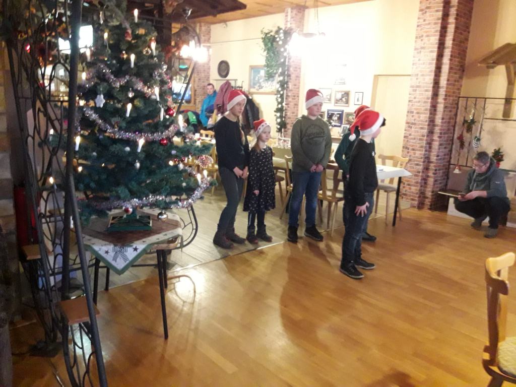 Rentnerweihnachts-feier mit einem kleinen Programm an die Omas und Opas in Rehfeld verteilt.
